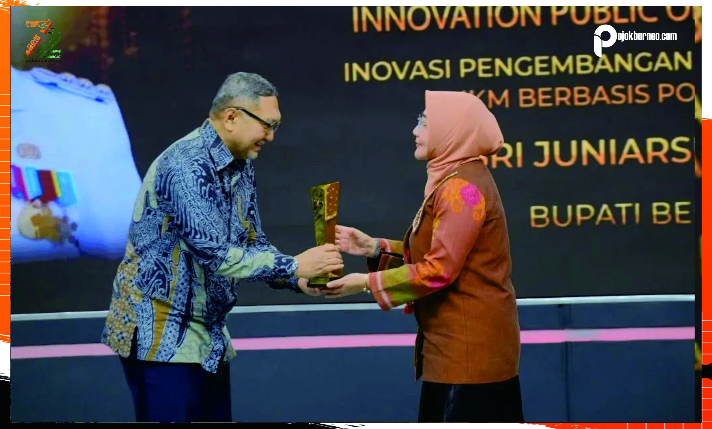 Bupati Berau, Sri Juniarsih Mas, menerima penghargaan Inovasi Membangun Negeri 2025 dari TvOne, sebagai bentuk apresiasi atas komitmen dan terobosan Pemerintah Kabupaten Berau dalam mendorong percepatan pembangunan, khususnya dalam bidang pengembangan pariwisata dan UMKM berbasis potensi lokal di Bumi Batiwakkal.