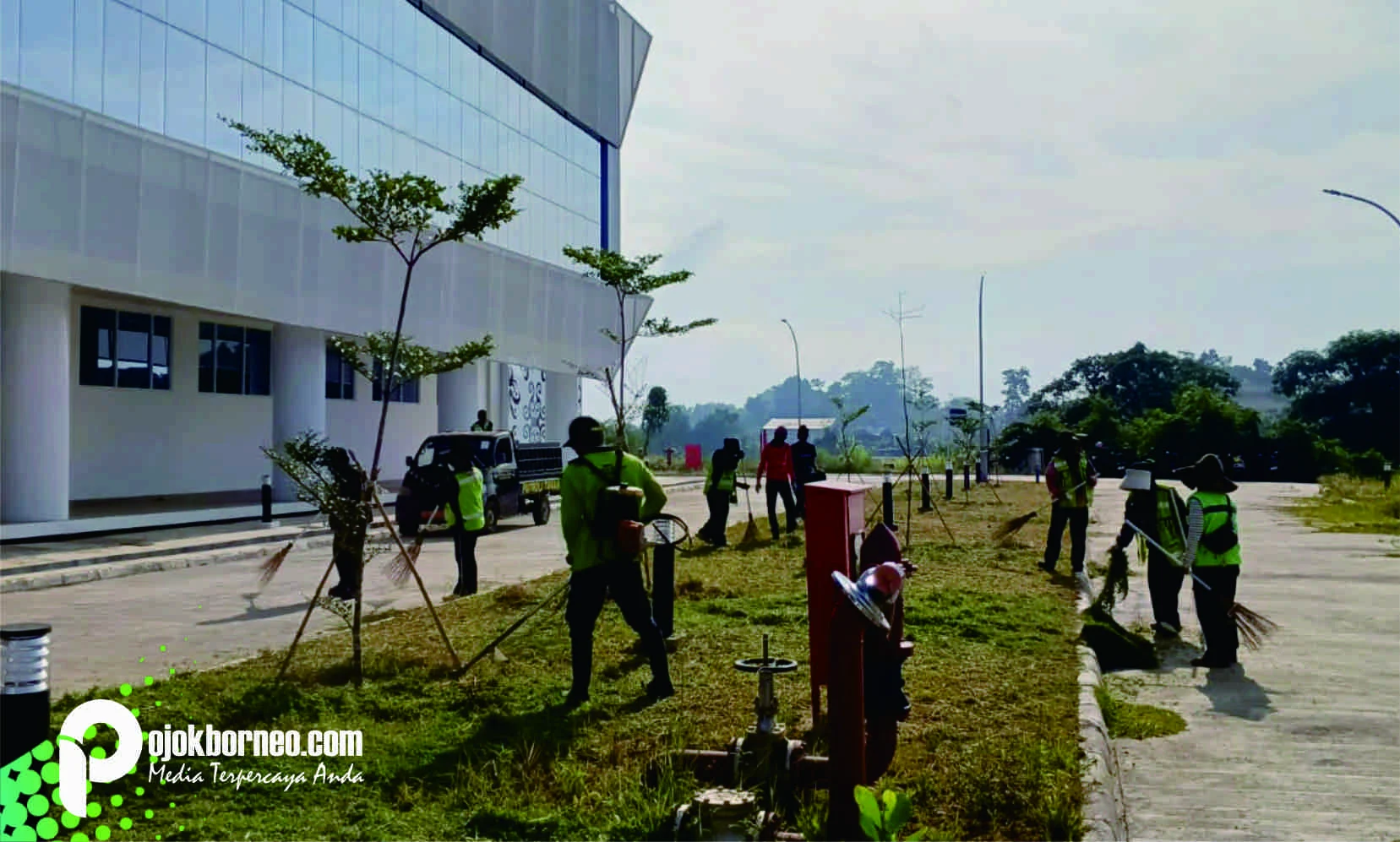 Pihaknya pada hari ini mengerahkan 10 (sepuluh) tenaga kebersihan dan menggunakan alat pemotong rumput serta 1 unit mobil tanki air maupun unit dump truck.