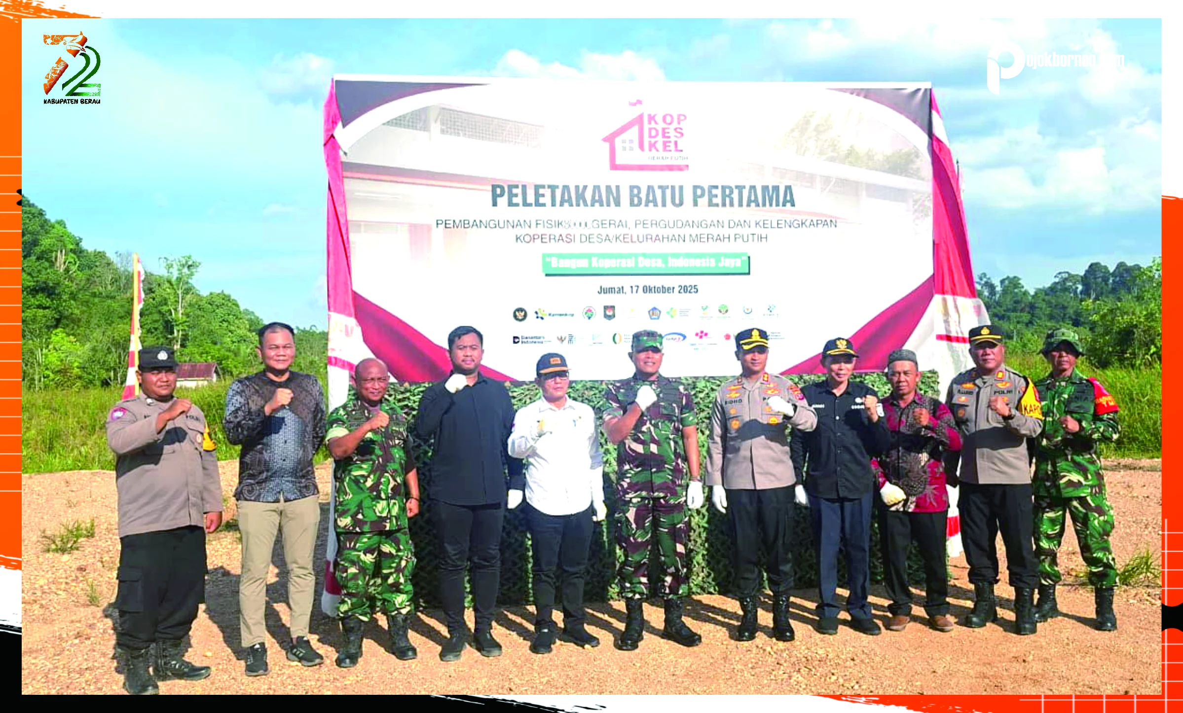 SAMBALIUNG – Kapolres Berau AKBP Ridho Tri Putranto bersama Forkopimda Kabupaten Berau menghadiri kegiatan Ground Breaking dan peletakan batu pertama pembangunan Koperasi Desa/Kelurahan Merah Putih di Jalan Kamboja RT 03, Kelurahan Sei Bebanir Bangun, Kecamatan Sambaliung, Jumat (17/10/2025).