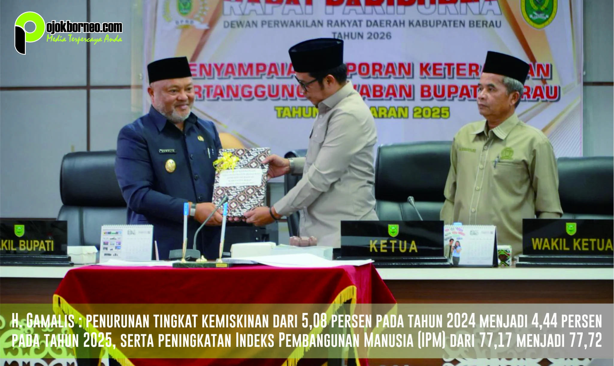 TANJUNG REDEB – Wakil Bupati Berau, Gamalis, mengahdiri Rapat Paripurna Dewan Perwakilan Rakyat Daerah (DPRD) Kabupaten Berau dengan agenda penyampaian Rekomendasi atas Laporan Pertanggungjawaban (LKPJ) Bupati Berau Tahun Anggaran 2025. Pertemuan ini berlangsung di Ruang Rapat Gabungan Komisi DPRD Kab. Berau pada Selasa siang (31/03/2026).