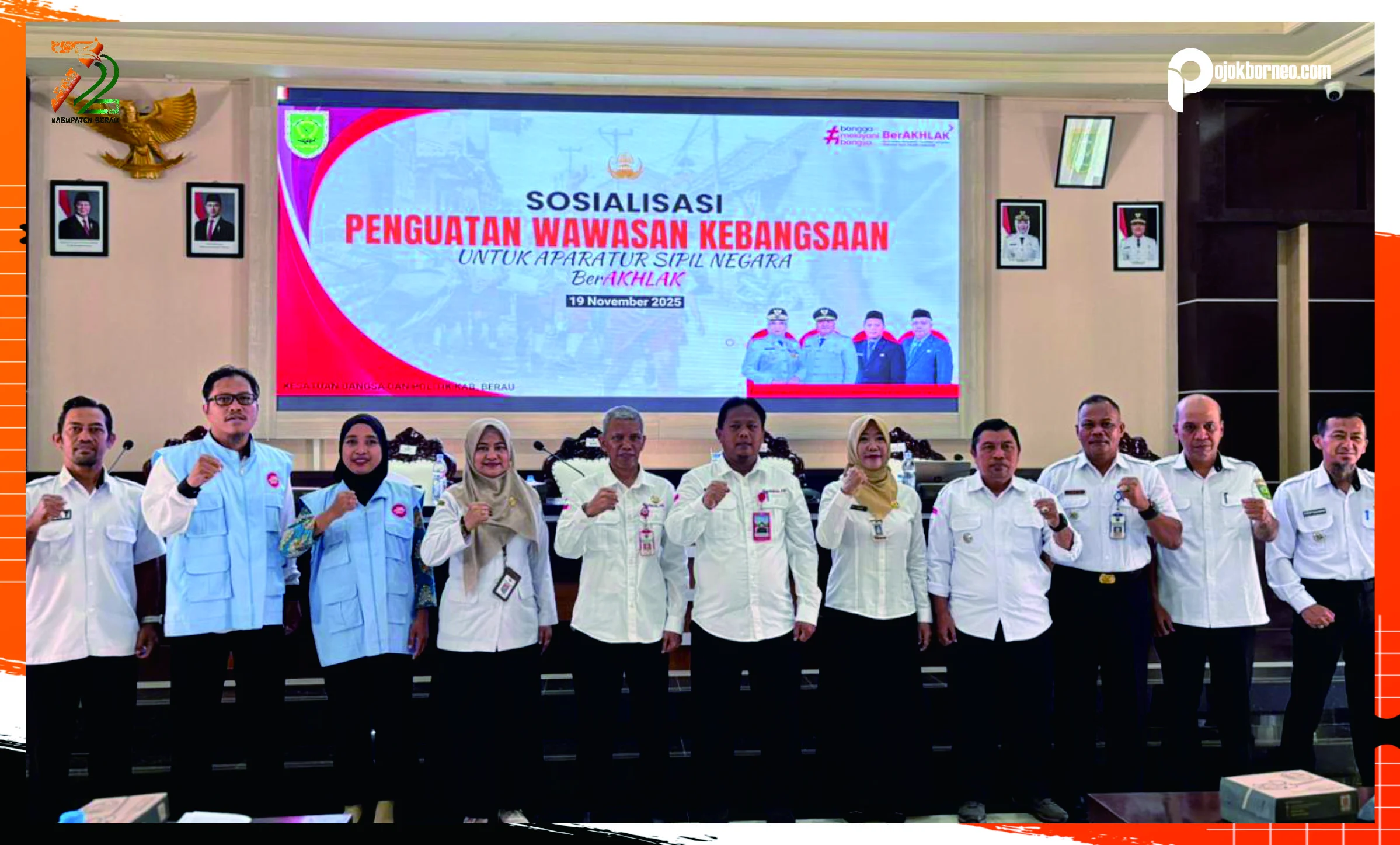 Hal ini diwujudkan melalui Sosialisasi Penguatan Wawasan Kebangsaan untuk ASN Berakhlak Tahun 2025, yang digelar pada Rabu (19/11/2025) di Ruang Rapat Sangalaki, Kantor Bupati Berau.