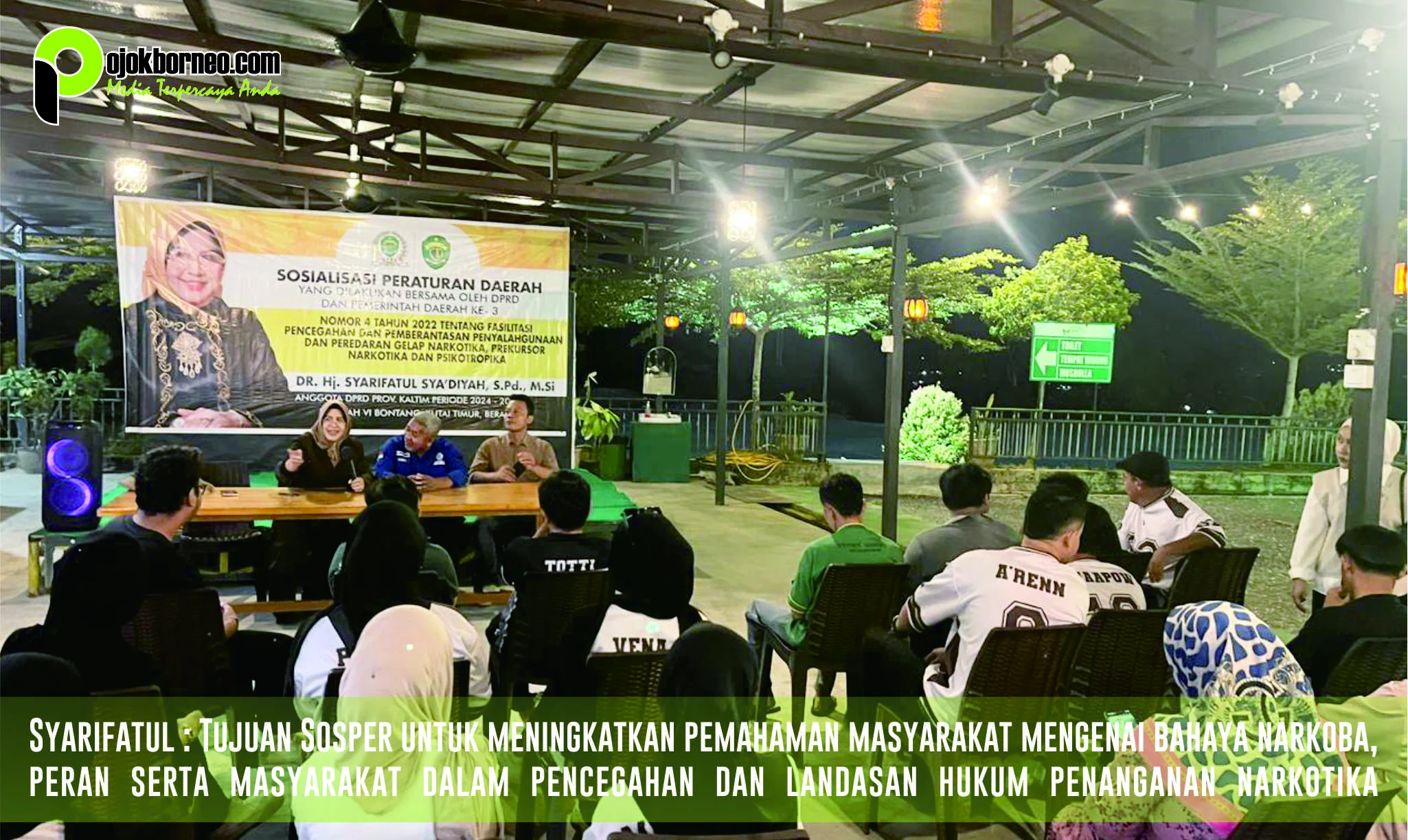 Kegiatan ini bertujuan memberikan pemahaman komprehensif kepada masyarakat terkait substansi Perda Propinsi Kalimantan Timur Nomor 4 Tahun 2022 sebagai instrumen hukum dalam upaya pencegahan dan pemberantasan narkotika ini, dimoderatori oleh Budiono, menghadirkan dua narsumber yaitu Yudha Budisantosa dan Yudi Sampurno.